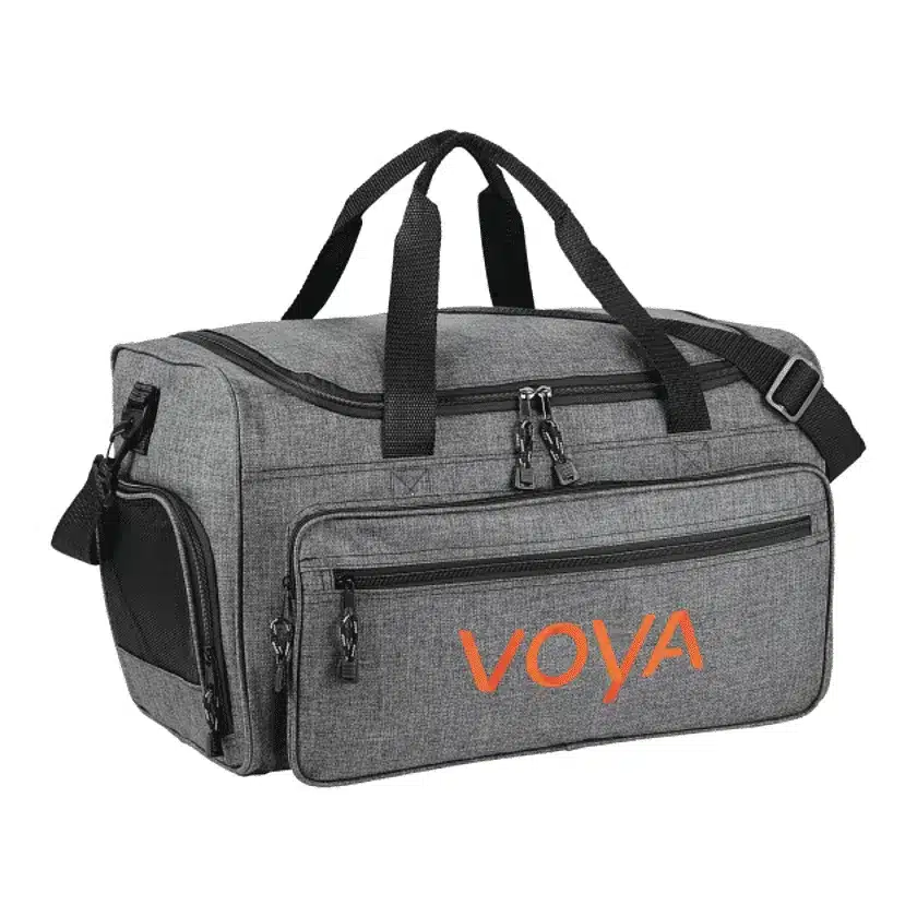 This custom duffel bag includes a zippered end pocket, perfect for shoes, and a gusseted front pocket. The Excel Sport Club Duffel Bag includes a detachable, adjustable shoulder strap.