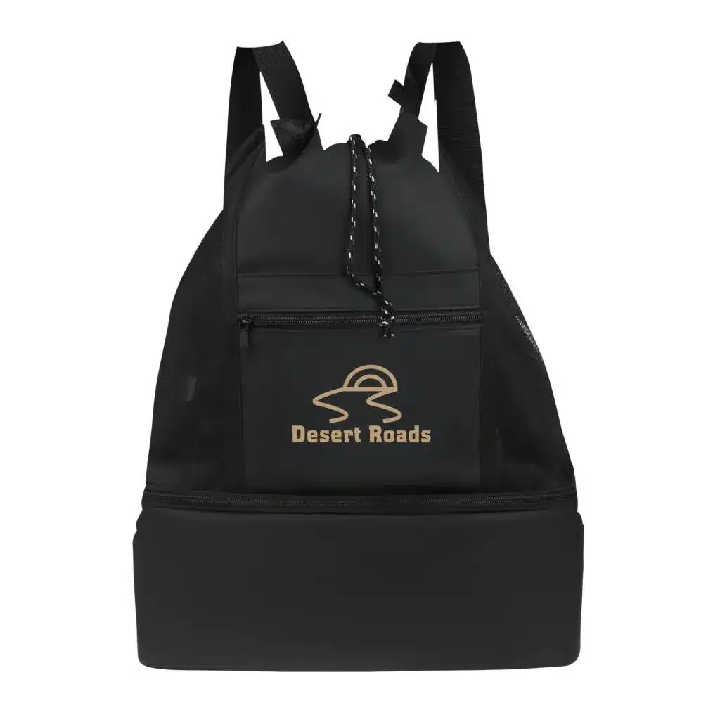 The Paxton 2-in-1 Drawstring Cooler Backpack is a smart storage choice for a day trip to the beach, the pool, or the park! The top of this bag features a locking drawstring main compartment with breathable mesh panels and a front zippered pocket for extra storage. Carry the bag using the top handle or wear it with the 1 1/2″ adjustable backpack straps. The bottom of the bag unzips to an 8-can cooler compartment with heat-sealed PEVA lining, large enough to keep refreshments cool while on the go. Use the mesh compartment for towels and swimsuits, and put in some sodas on the bottom. You’ve got everything you need for a great day!