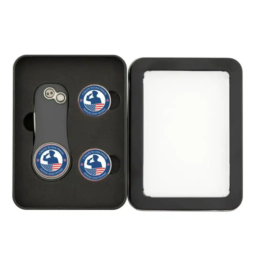 Create a swinging giveaway for charity or corporate golf tournaments and other golfing events with the Pitchfix Hybrid 2.0 Divot Tool Window Gift Set.